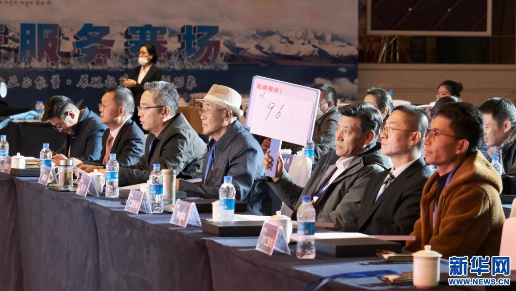 11月23日,第三屆拉薩旅游行業(yè)服務(wù)技能大賽中評(píng)委為參賽選手打分。 新華網(wǎng) 貢桑央吉(實(shí)習(xí)生) 攝