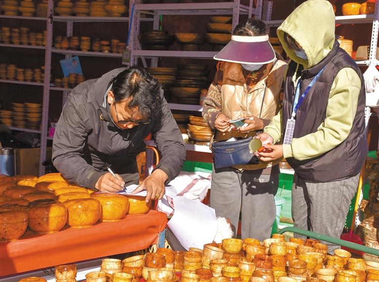 山南本地的特色優(yōu)質(zhì)商品尤其受到青睞:扎囊的氆氌,洛扎的粉絲,瓊結(jié)的蕎麥面,加查的核桃、木碗,貢嘎的邦典、紅土豆,措美的奶渣、牛羊肉等等,紛紛占據(jù)重要展位,引來消費(fèi)者紛至沓來,熱情選購(gòu)。