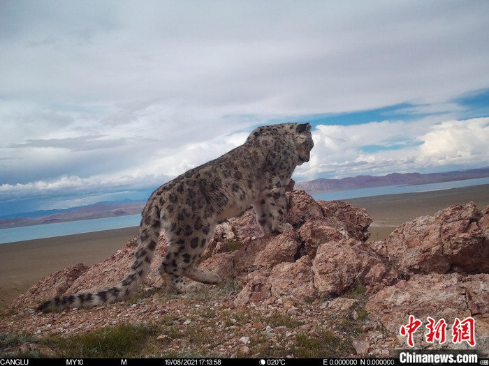 資料圖為2021年8月19日在西藏自治區(qū)那曲市境內(nèi)由紅外相機拍攝到的雪豹活動影像。 中新社發(fā) 山水自然保護中心 供圖