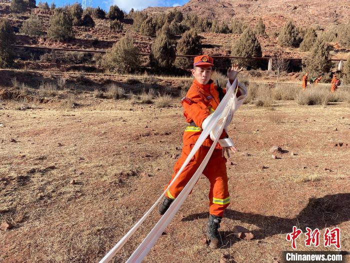 圖為消防指戰(zhàn)員架設(shè)水源地。江達(dá)縣森林消防中隊(duì)貢覺駐防分隊(duì) 供圖