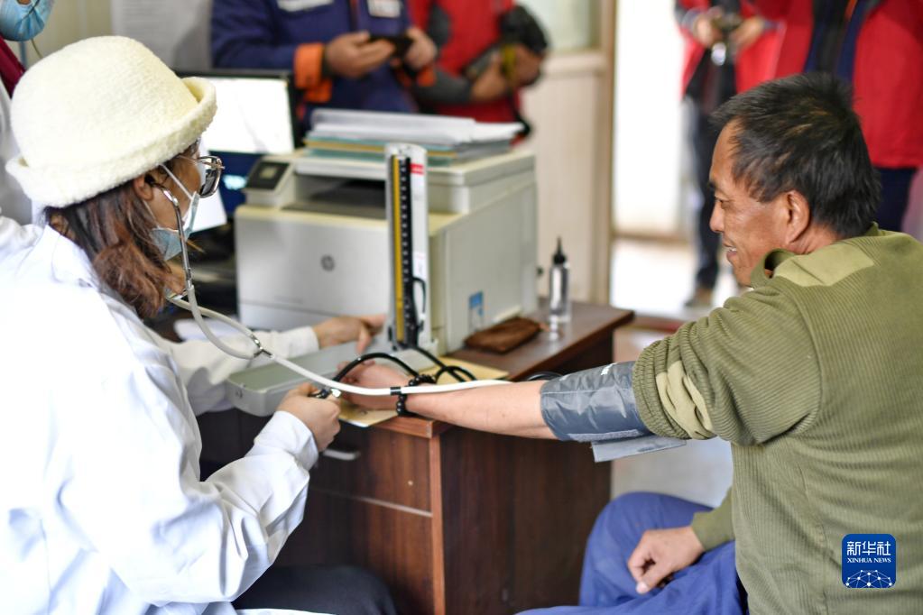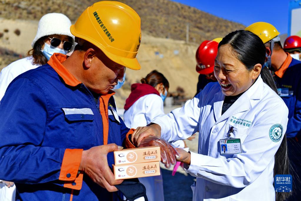 當日,西藏康城腫瘤醫(yī)院的醫(yī)護人員來到拉薩市墨竹工卡縣,為工地工人義診,為他們送去冬天里的溫暖。