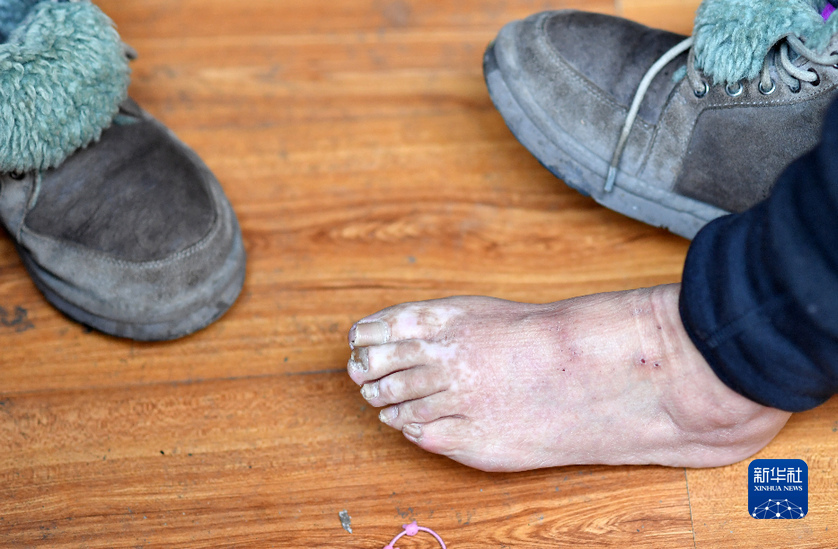 達(dá)吉阿媽的身上,如今仍留有送菜時的凍傷(1月26日攝)。新華社記者 覺果 攝