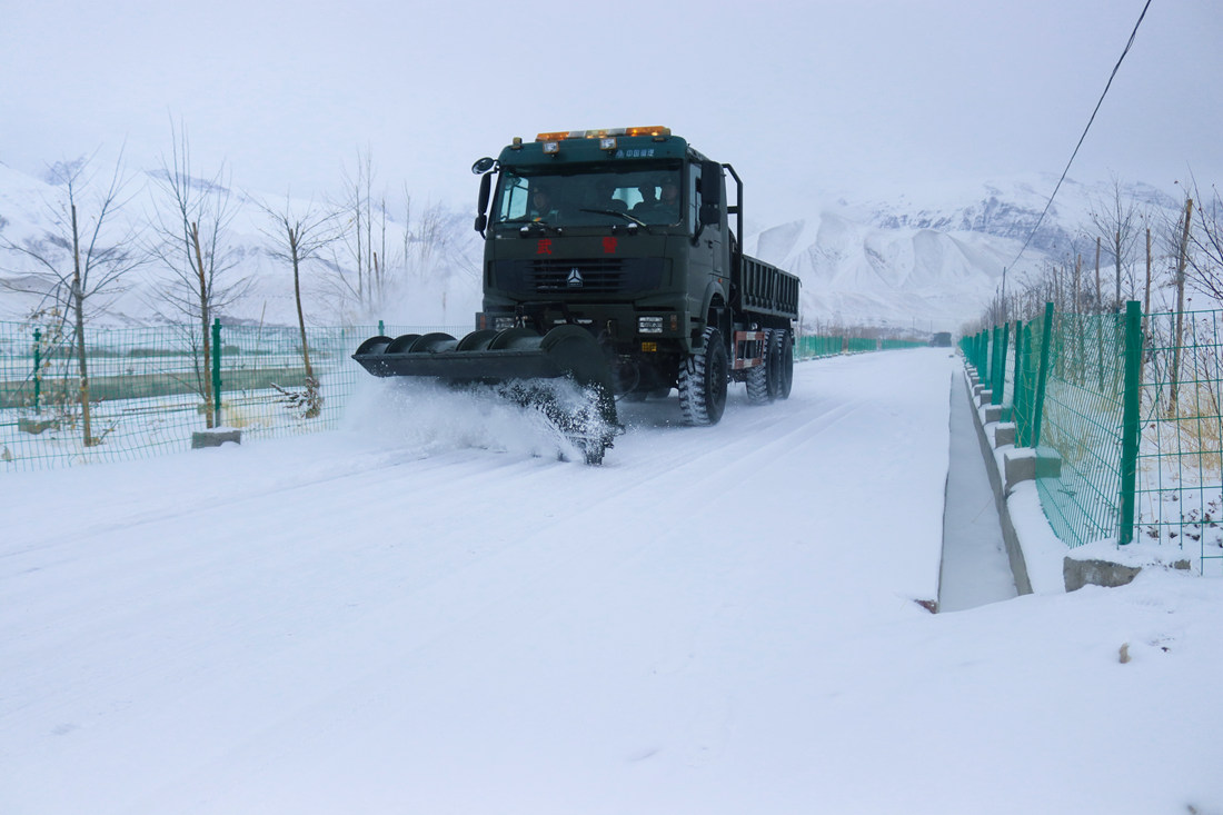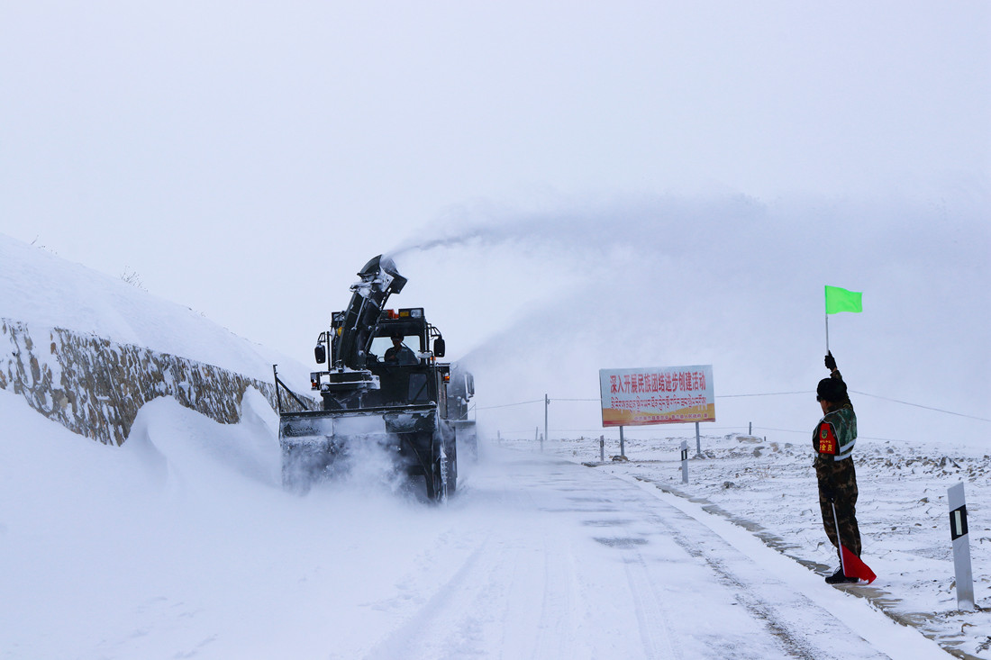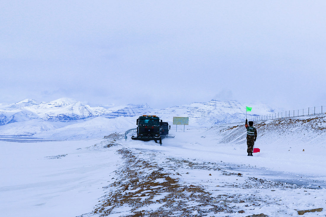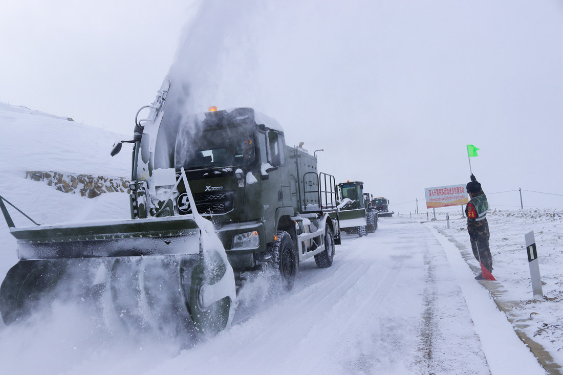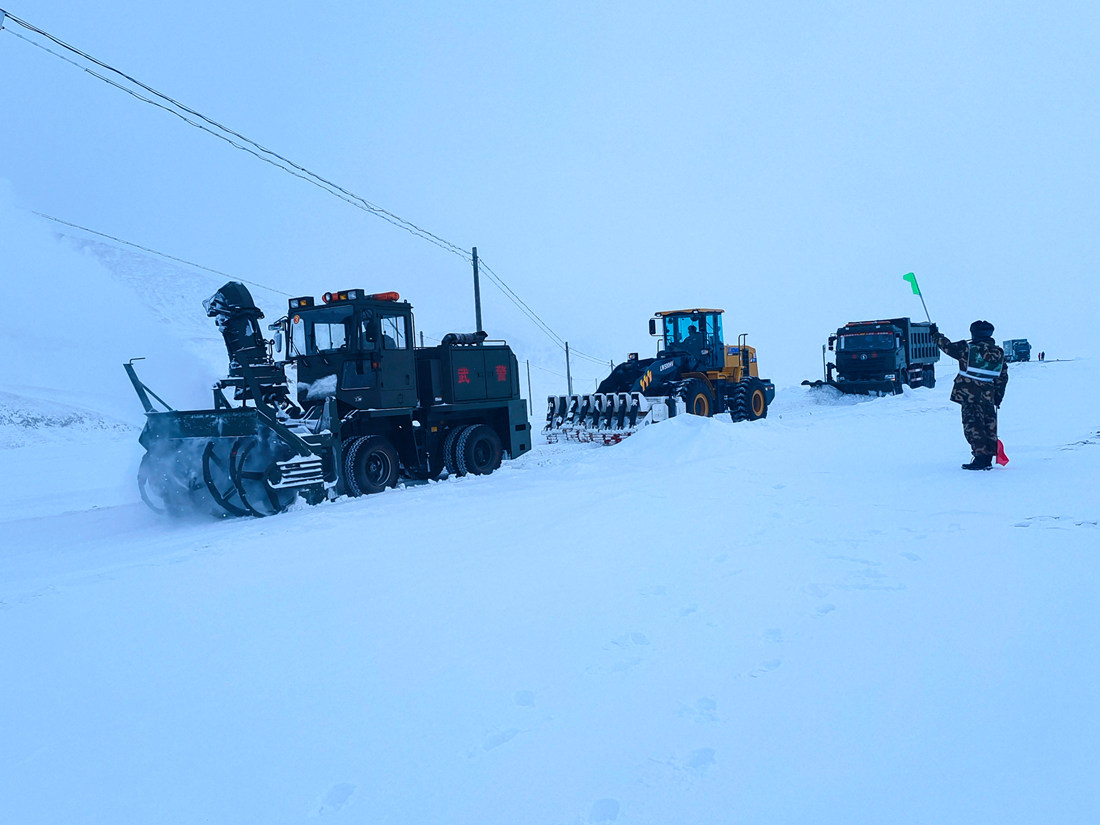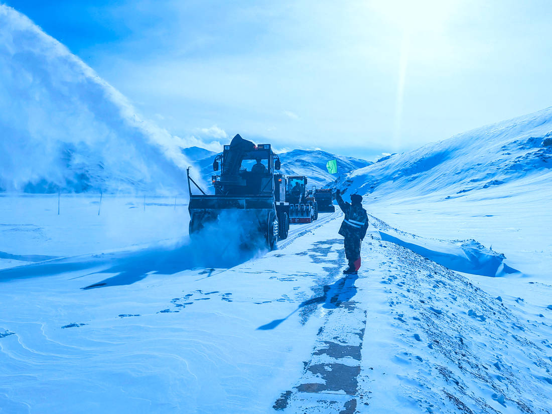 因災(zāi)害現(xiàn)場地處平均海拔4000多米以上海拔,持續(xù)降雪不斷,加之氣溫低至零下20多攝氏度,給整個道路搶通工作帶來了不少難度。為盡快清理路面積雪搶通道路,武警官兵采取“人歇機不停、分段搶通、先通后拓”的方法進(jìn)行全力搶通,克服了高寒缺氧及紫外線強烈等重重困難。