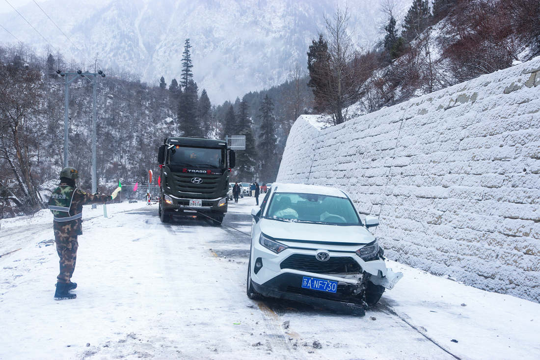 險情發(fā)生后,擔(dān)負(fù)該路段養(yǎng)護(hù)保通任務(wù)的武警第二機動總隊某支隊迅速啟動道路搶通預(yù)案,分別從阿里地區(qū)、林芝市、昌都市多個方向派出專業(yè)骨干力量和拋雪機、除雪車、破冰機、裝載機等大型救援裝備趕赴災(zāi)害現(xiàn)場實施搶通。武警官兵抵達(dá)現(xiàn)場后,隨即對災(zāi)害現(xiàn)場進(jìn)行偵查,并制定科學(xué)搶通方案,同時安撫滯留群眾耐心等待。