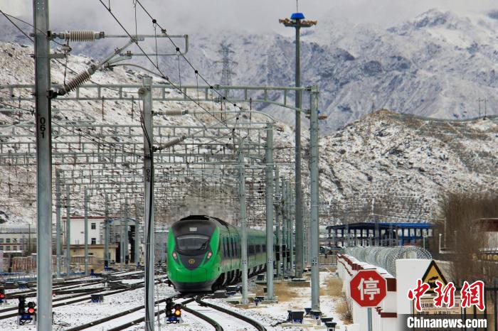 圖為日喀則方向動車組進入拉薩車站。 李海星 攝