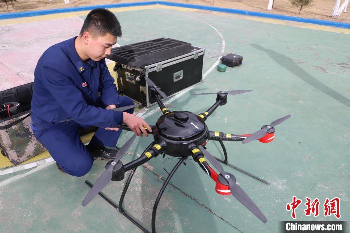 圖為校準無人機?!〔际猩窒乐嘘牴﹫D