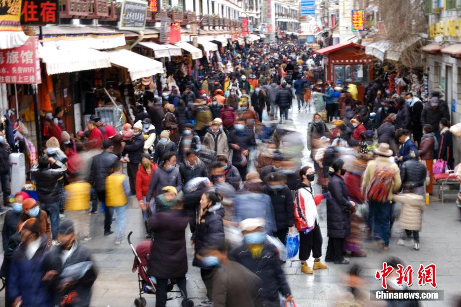 拉薩小昭寺附近采購(gòu)年貨的民眾絡(luò)繹不絕。江飛波 攝
