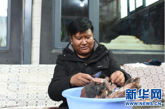 2月27日,在榮瑪鄉(xiāng)高海拔生態(tài)搬遷點(diǎn)村民達(dá)娃次仁在清洗羊頭。新華網(wǎng) 旦增努布 攝