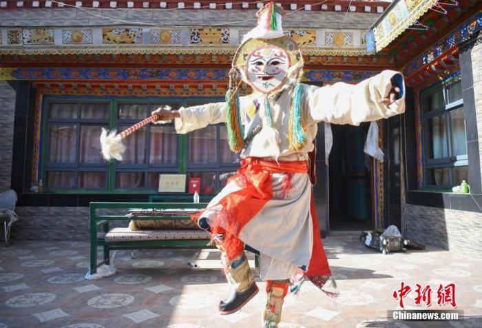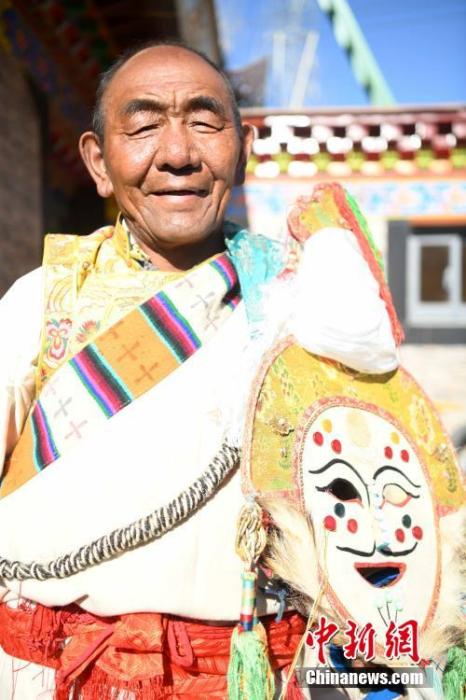 圖為3月21日,協(xié)榮“仲孜”國家級非物質(zhì)文化遺產(chǎn)傳承人桑珠。 中新社記者 貢嘎來松 攝