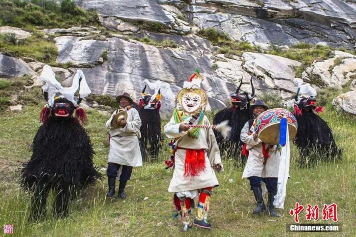 資料圖為桑珠帶領團隊表演協(xié)榮“仲孜”。 中新社記者 貢嘎來松 攝