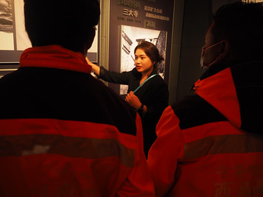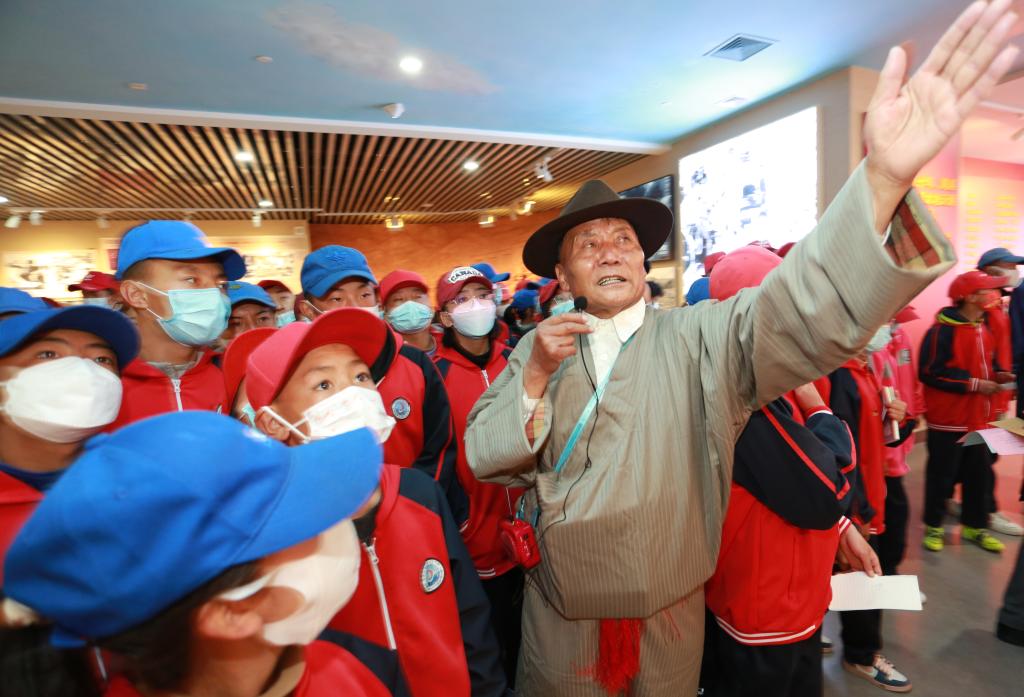 普次仁正在給參觀的學(xué)生進(jìn)行解說(shuō)(2022年3月28日攝)。(受訪者供圖)