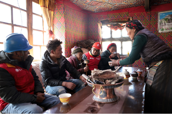 帳篷里大家圍坐在一起,喝著熱氣騰騰的酥油茶,熱情的讓卓不停地向服務(wù)隊(duì)隊(duì)員獻(xiàn)上脆脆的風(fēng)干肉,有說(shuō)有笑。讓卓85歲的老奶奶瑪姆也湊起熱鬧聊家常,即使聽(tīng)力有些下降,但聊到用電給生活帶來(lái)的改變時(shí),老奶奶笑著用流利的藏語(yǔ)說(shuō)“黨的政策好?。 ?/p>