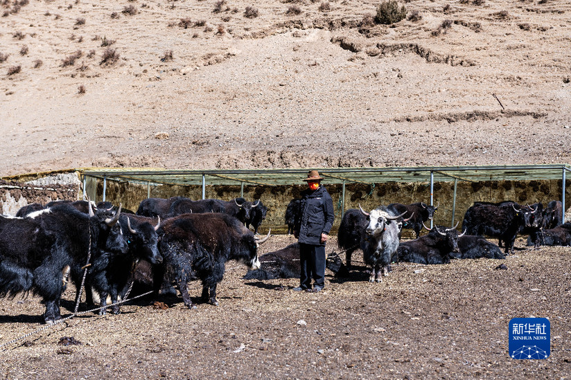 貢培在西藏娘亞牦牛養(yǎng)殖產(chǎn)業(yè)發(fā)展有限責(zé)任公司的養(yǎng)殖場(chǎng)工作(3月30日攝)。新華社記者 周荻瀟 攝