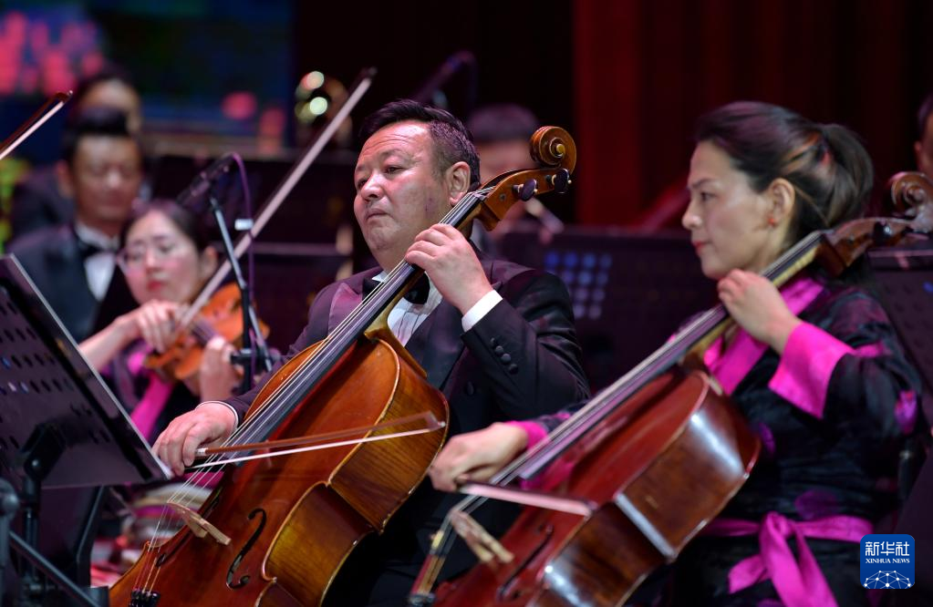 西藏愛樂樂團的藝術家在演奏交響樂《古格幻想》(4月3日攝)。新華社記者 張汝鋒 攝