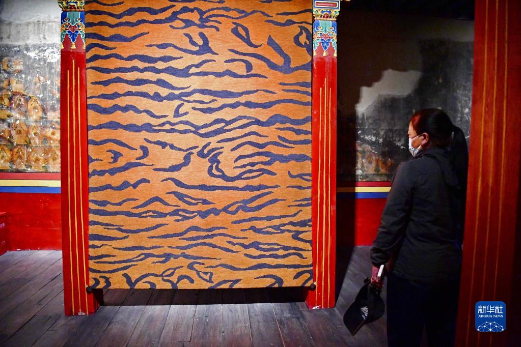 當(dāng)日,名為“智慧和無畏”的“虎毯”展覽在拉薩吉本崗藝術(shù)中心展出。西藏的非遺工作者根據(jù)古代藏毯藏品重新挖掘,整理了以“虎”為主題的圖案,設(shè)計(jì)制作了本次展覽作品。本次展覽展出20余件各具特色的藏毯藝術(shù)作品,展覽將持續(xù)到5月初。