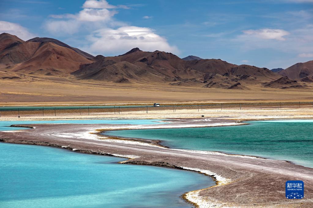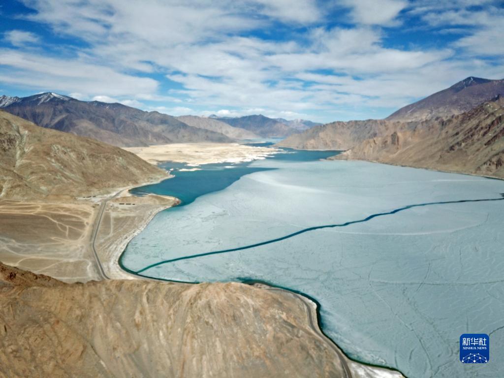 這是位于西藏自治區(qū)阿里地區(qū)改則縣的物瑪錯,湖水呈現(xiàn)出不同顏色(2022年4月12日攝)。新華社記者 姜帆 攝