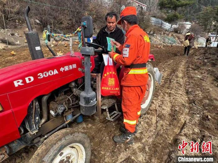 圖為消防救援人員向民眾發(fā)放防火科普宣傳手冊。洛桑頓珠 攝