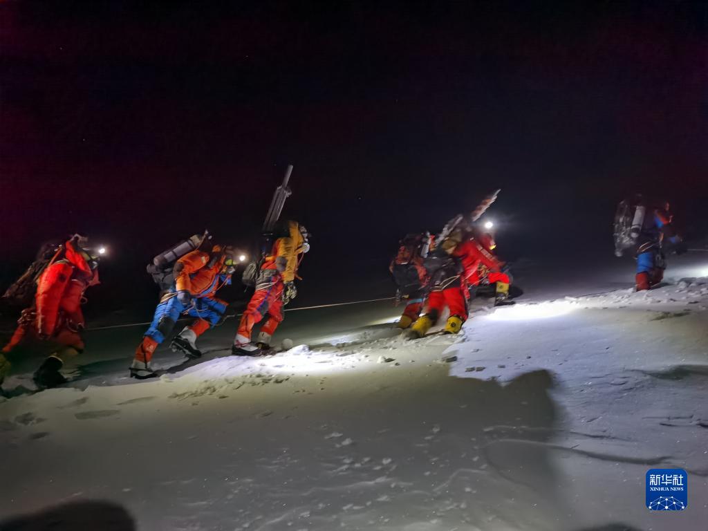 5月4日凌晨,珠峰科考隊(duì)員從突擊營(yíng)地出發(fā),向珠穆朗瑪峰頂發(fā)起沖刺。新華社特約記者 索朗多吉 攝