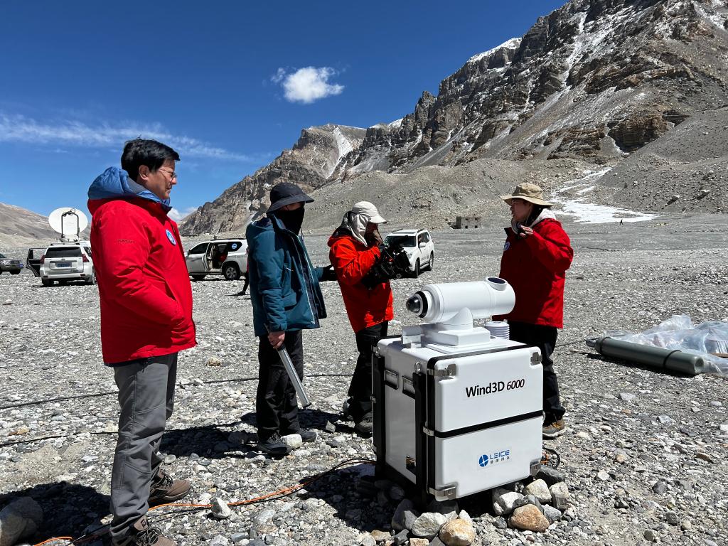 “巔峰使命”珠峰科考時(shí),馬耀明(左一)在指導(dǎo)團(tuán)隊(duì)進(jìn)行科學(xué)研究。新華社記者 姜帆 攝