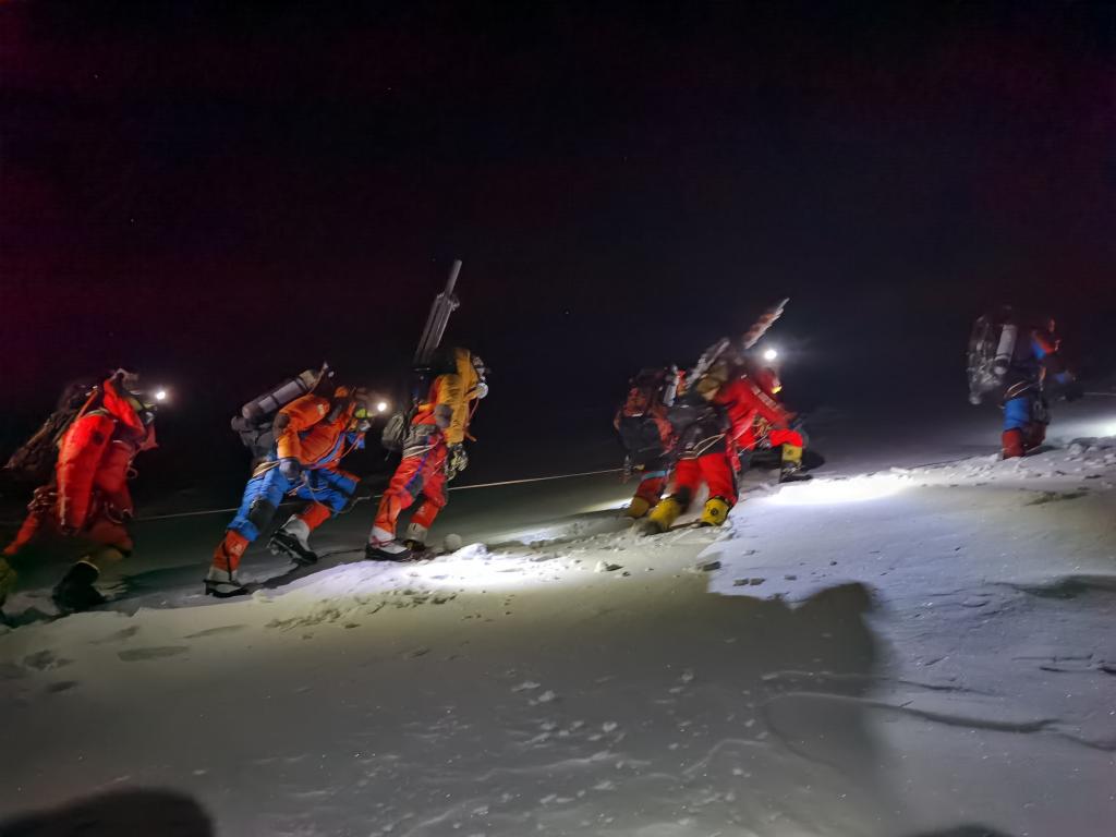 2022年5月4日凌晨,珠峰科考隊(duì)員從突擊營地出發(fā),向珠穆朗瑪峰峰頂發(fā)起沖刺。新華社特約記者 索朗多吉 攝