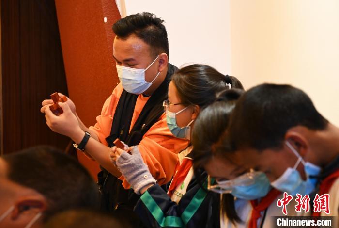 此次展覽的首場講解由拉薩市北京實(shí)驗(yàn)中學(xué)學(xué)生承擔(dān)?;顒?dòng)還邀請了在校學(xué)生體驗(yàn)了古建榫卯組裝、北京古城池拼圖等社教活動(dòng)。