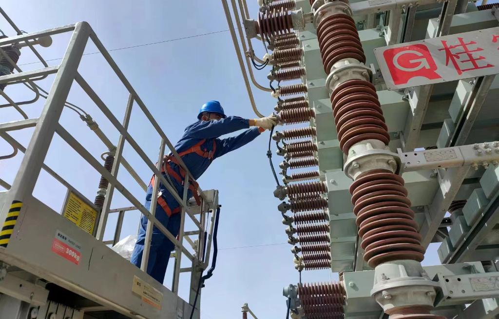 5月23日,國(guó)網(wǎng)青海超高壓公司變電專業(yè)技術(shù)人員正在±400千伏柴達(dá)木換流站開展檢修作業(yè)。(國(guó)網(wǎng)青海超高壓公司供圖)
