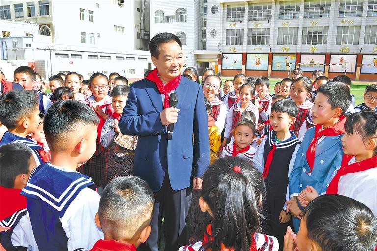 “六一”國際兒童節(jié)來臨之際,西藏自治區(qū)黨委書記王君正5月31日上午來到拉薩市第一小學(xué)參加“六一”國際兒童節(jié)“喜迎二十大、爭做好隊員”主題隊日活動,代表自治區(qū)黨委、政府向全區(qū)少年兒童致以節(jié)日的祝福,向廣大教師表示親切的慰問,希望廣大少年兒童傳承紅色基因,爭做紅色少年,努力做合格的社會主義建設(shè)者和接班人。
