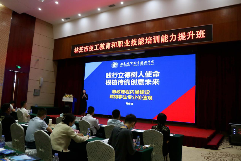 圖為廣東機電職業(yè)技術(shù)學(xué)院鄭偉光校長為林芝市技工教育和職業(yè)技能培訓(xùn)能力提升班學(xué)員授課。