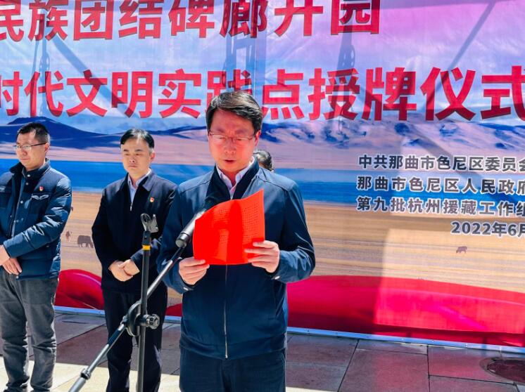 李東表示,西藏首個(gè)民族團(tuán)結(jié)碑廊——杭州民族團(tuán)結(jié)碑廊開園暨那曲市新時(shí)代文明實(shí)踐點(diǎn)授牌儀式的舉行,標(biāo)志著色尼區(qū)新打造的愛國(guó)主義教育和民族團(tuán)結(jié)教育基地正式運(yùn)行,對(duì)色尼區(qū)推進(jìn)新時(shí)代文明實(shí)踐工作更加有形有為,創(chuàng)建全國(guó)民族團(tuán)結(jié)進(jìn)步模范區(qū)具有重要意義。希望色尼各族干部群眾不斷鞏固“團(tuán)結(jié)穩(wěn)定是福、分裂動(dòng)亂是禍”的思想認(rèn)識(shí)根基,維護(hù)祖國(guó)統(tǒng)一,加強(qiáng)民族團(tuán)結(jié),旗幟鮮明反對(duì)分裂,努力提升民族團(tuán)結(jié)工作的成效,為創(chuàng)建全國(guó)民族團(tuán)結(jié)進(jìn)步模范區(qū)作出積極貢獻(xiàn)。