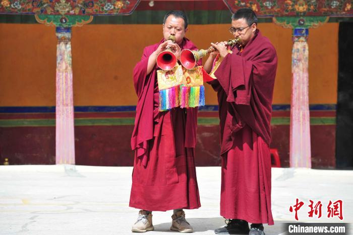 圖為哲蚌寺僧人表演甲林演奏。貢嘎來(lái)松 攝