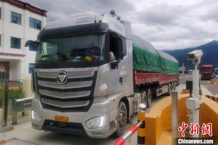 圖為貨運(yùn)車輛駛?cè)肓种グ鸵顺迿z測站,符合要求后可在西藏林拉高等級(jí)公路上行駛。西藏自治區(qū)交通運(yùn)輸廳 供圖