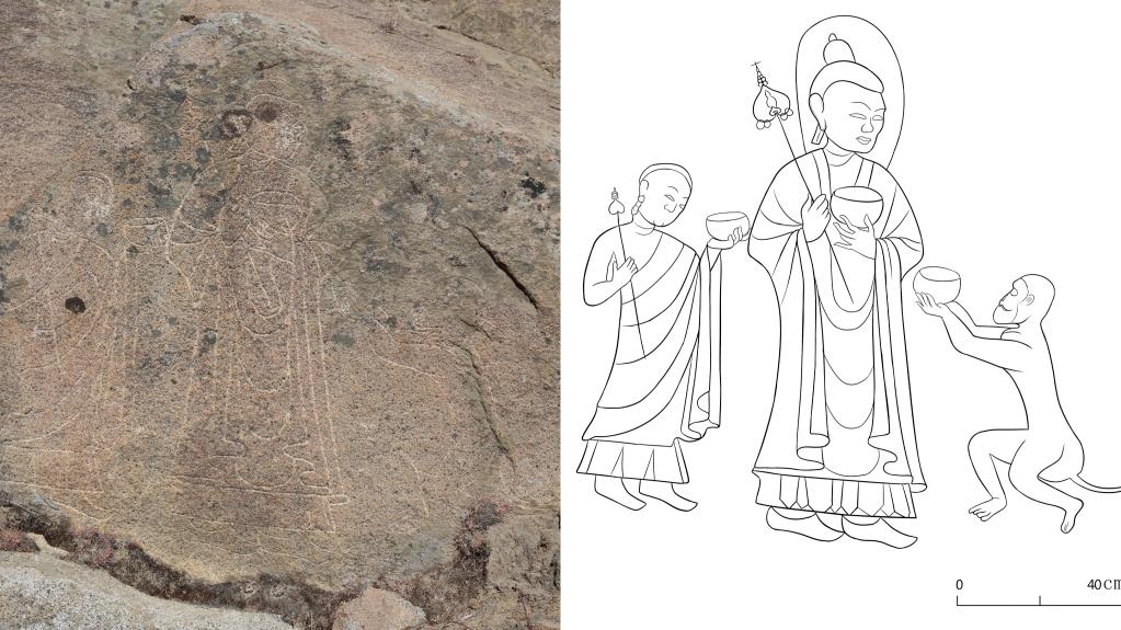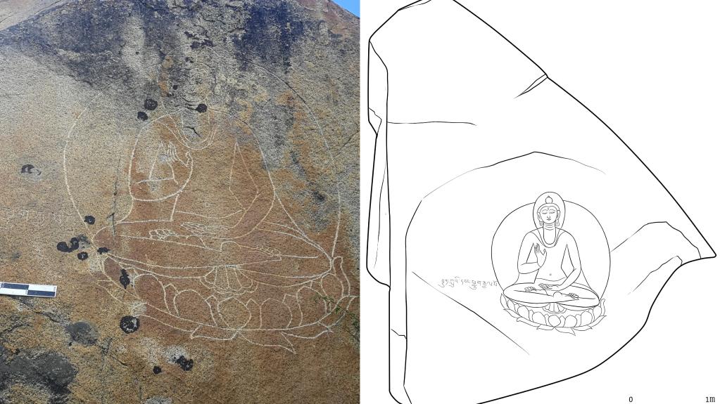 自治區(qū)文物保護(hù)研究所研究員夏格旺堆說,這一石刻造像群造像技法皆為陰線刻,雕工技術(shù)嫻熟,線條流暢。此外,部分石刻群區(qū)域不僅造像分布集中,而且在其周圍可見地面石砌建筑遺址,推測(cè)應(yīng)當(dāng)與早期佛教修行場(chǎng)相關(guān)。石刻群中,部分造型還反映出較為明顯的元代特征、吐蕃晚期或吐蕃分裂不久后的吐蕃遺風(fēng)。