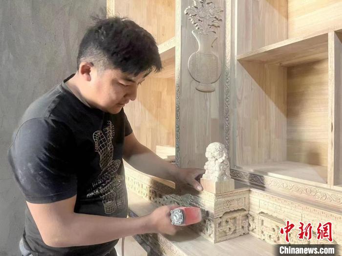 說干就干,2021年他在村里開了木材加工廠,為此,他還特地去外地學習操作方法,“藏式家具的雕花很復雜,但是我有壁畫的繪畫功底,學習起來非常快?!?/p>
