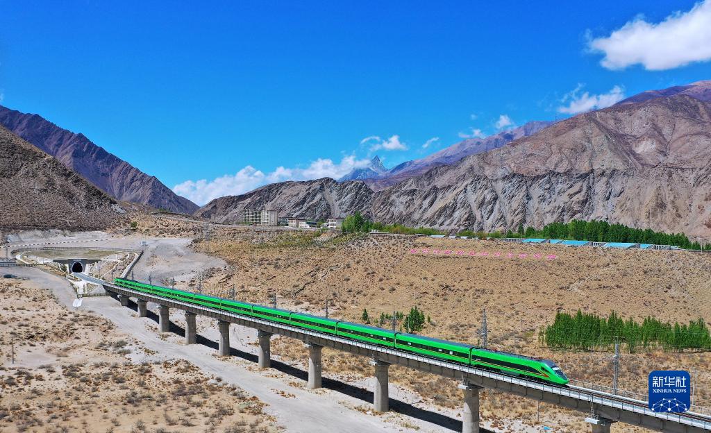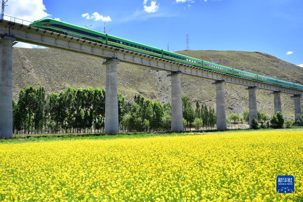 6月22日,復(fù)興號(hào)列車行駛在西藏山南境內(nèi)。新華社記者 覺(jué)果 攝