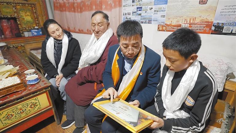 沈陽市第九批援藏工作組副領(lǐng)隊(duì)、安多縣常務(wù)副縣長(zhǎng)裴德本來到資助的貧困中學(xué)生古扎多吉家中家訪。