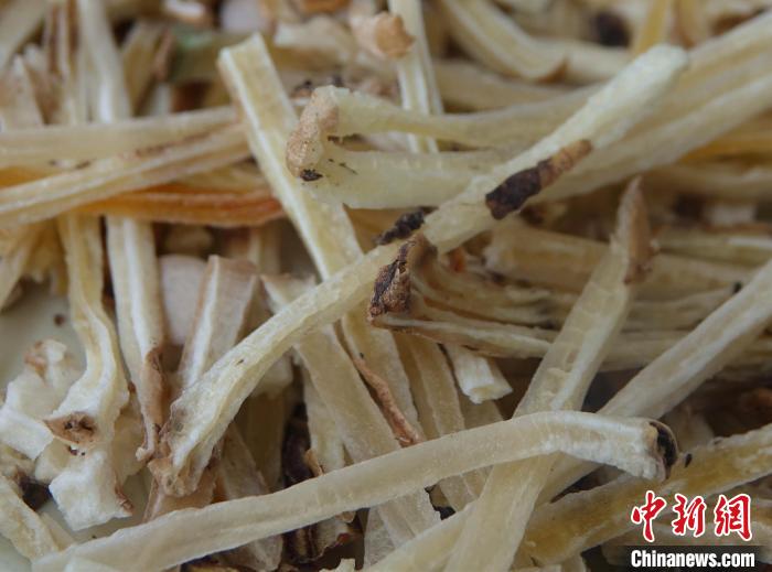 圖為由波密藏天麻制作而成的天麻絲。 冉文娟 攝