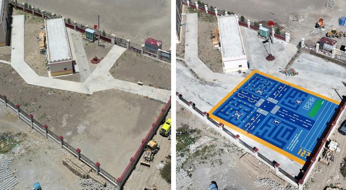扎西宗鄉(xiāng)完全附屬小學(xué)幼兒園操場建設(shè)前后航拍對比圖