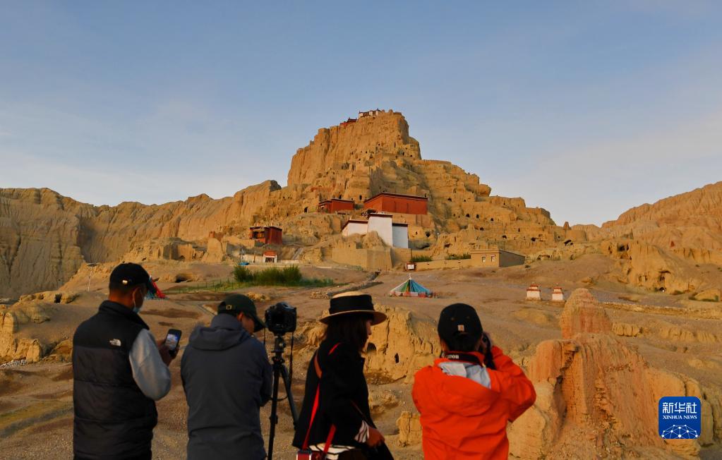 8月3日,游客在西藏札達縣拍攝古格王國遺址。新華社記者 張汝鋒 攝