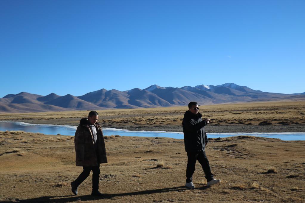 王軍強(右)在申扎縣巴扎鄉(xiāng)查藏藏布巡河。(圖片由申扎縣委宣傳部提供)