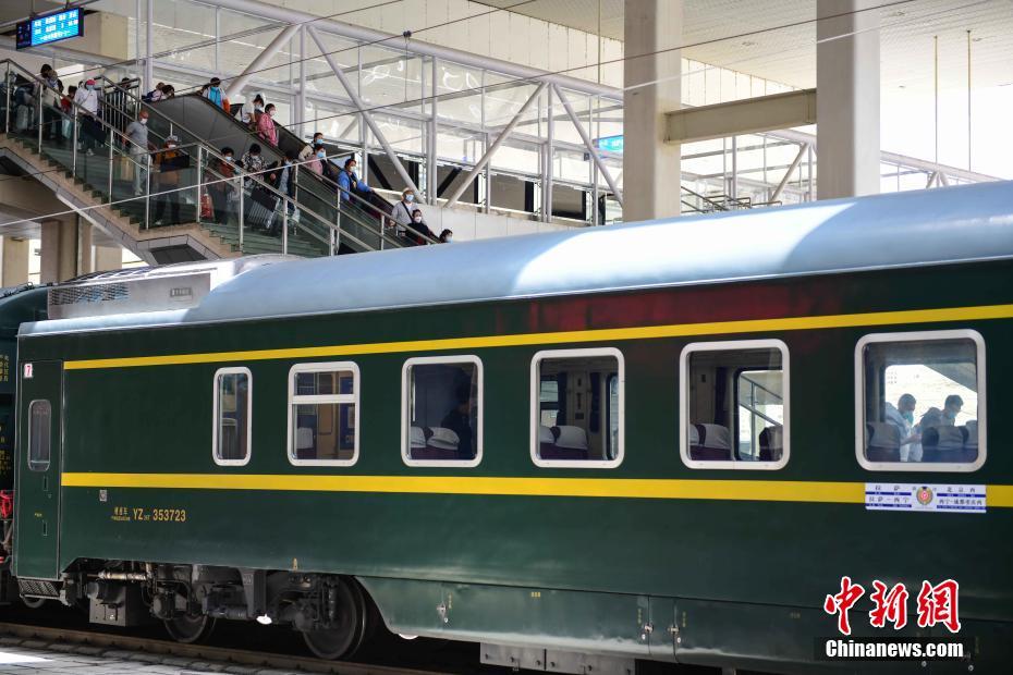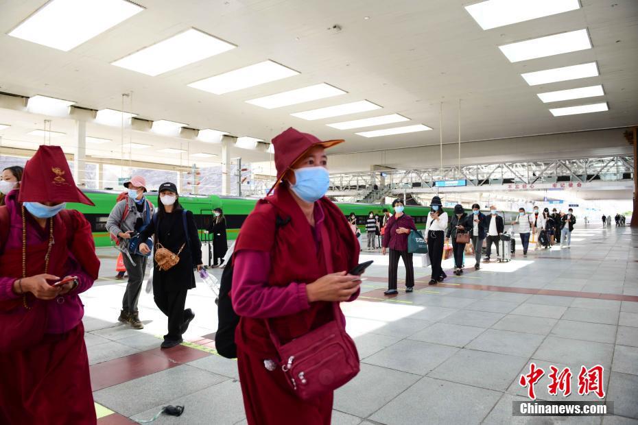 8月11日,旅客有序來到鐵路拉薩站站臺(tái)上。據(jù)悉,自本次疫情發(fā)生以來拉薩火車站日均離藏運(yùn)送旅客數(shù)量約6000人次,貢嘎機(jī)場累計(jì)出港旅客約2萬人次。 中新社記者 貢嘎來松 攝