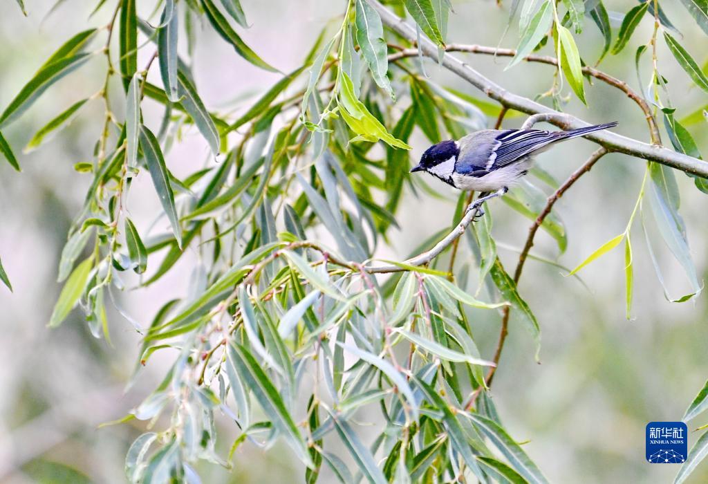 在拉薩市一家單位的院內,一只小鳥落在枝頭(8月15日攝)。新華社記者 張汝鋒 攝