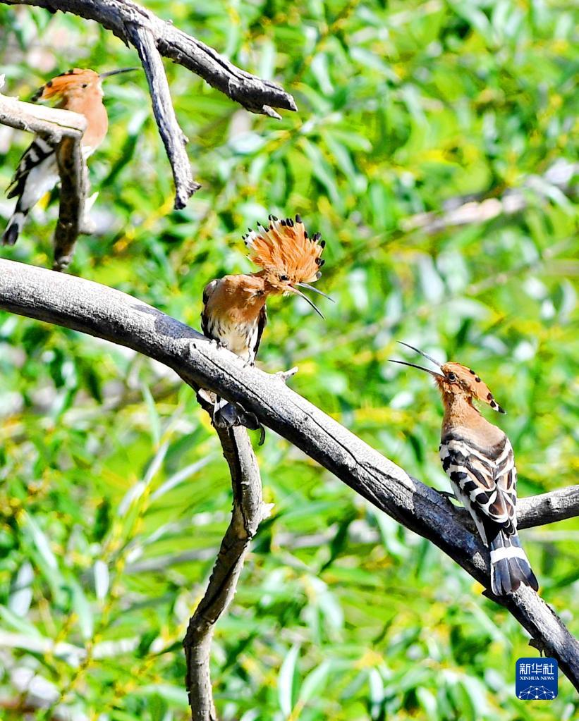8月25日,幾只戴勝在樹(shù)上嬉戲。新華社記者 張汝鋒 攝
