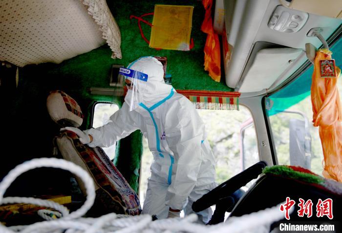 移民管理警察梅凡檢查進(jìn)入吉隆口岸限定區(qū)域卡口車輛。 肖富貴 攝