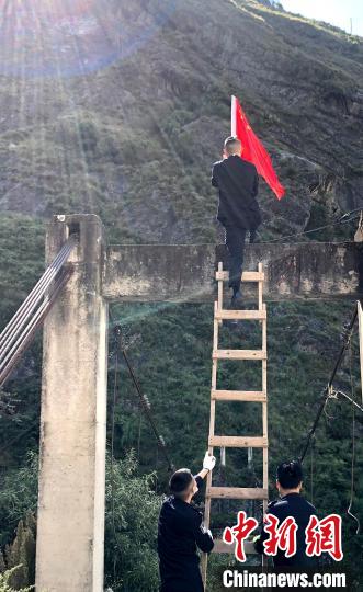 巡邏間隙,移民管理警察在口岸遺址上方更換國旗。 郭章統(tǒng) 攝
