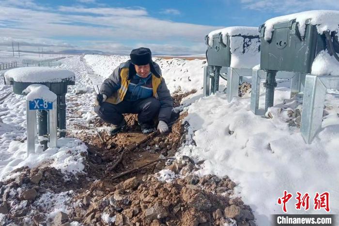 在唐古拉山地區(qū),空氣中的含氧量不足平原地區(qū)的50%,一個(gè)看似簡(jiǎn)單而又行云流水的檢查作業(yè),一套下來,工作人員們氣喘吁吁?!敖裉焯乒爬奶鞖膺€不錯(cuò),風(fēng)也不大?!泵遍苌?、眉毛上結(jié)滿了霜花的梁海峰一邊檢查一邊說。