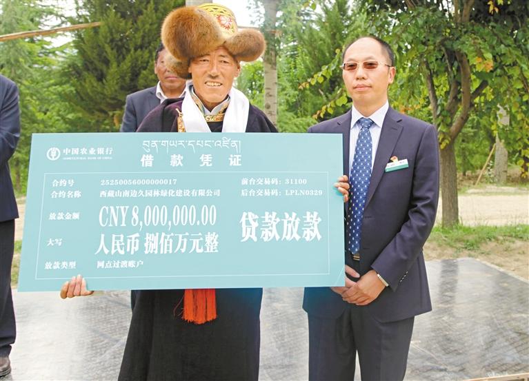 農行山南分行為山南邊久園林有限公司發(fā)放西藏自治區(qū)首筆林權抵押貸款。