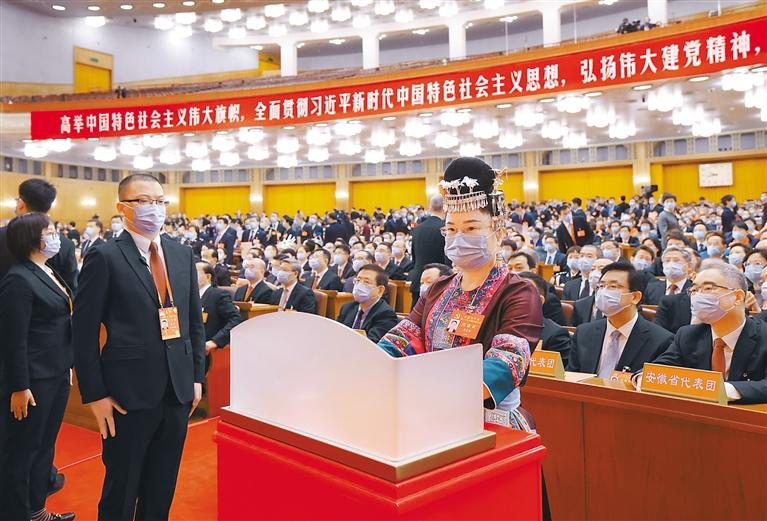 圖為10月22日,中國共產(chǎn)黨第二十次全國代表大會在北京人民大會堂勝利閉幕。這是代表投票選舉。新華社記者 劉衛(wèi)兵 攝
