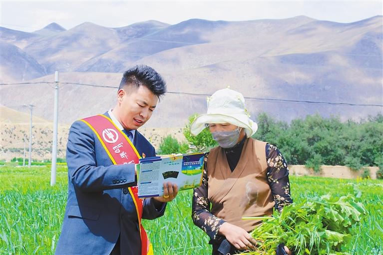 農行拉薩分行員工走進田間地頭為農牧民普及金融知識。