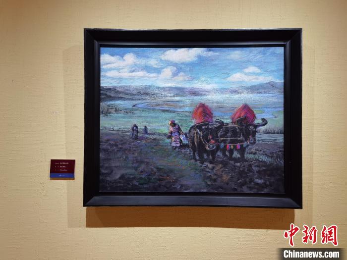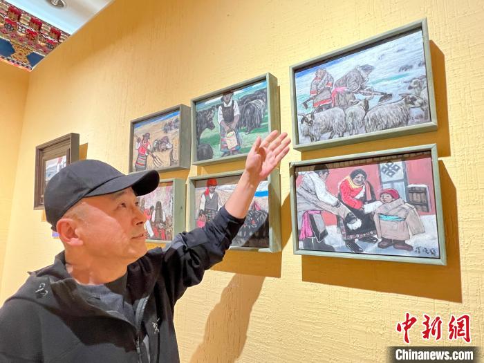 策展人李亞男向中新網(wǎng)記者介紹,崔曉曉首次到西藏那曲便結(jié)識(shí)了一位當(dāng)?shù)嘏笥选?,他將這位藏族青年放牧、添置汽車、蓋新房等畫(huà)面用畫(huà)筆記錄了下來(lái),在本次展覽中展出。