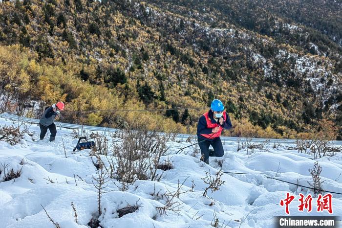 圖為搶修人員在西藏洛扎縣對(duì)大雪導(dǎo)致?lián)p壞的線路進(jìn)行搶修。多吉朗杰 攝